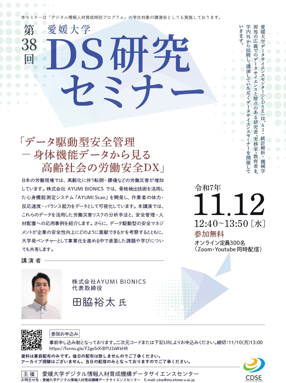 第38回 愛媛大学DS研究セミナーにて代表・田脇が講師として登壇しました!